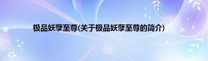 极品妖孽至尊(关于极品妖孽至尊的简介)