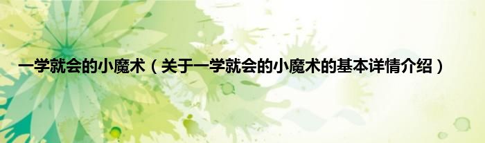 大家好我是小蝌蚪,一学就会的小魔术,关于一学就会的小魔术的基本详情介绍很多人还不知道,那么现在让我们一起来看看吧!