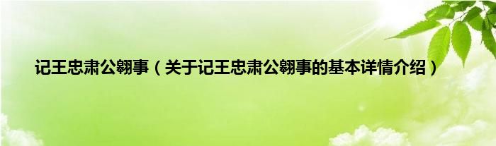 本文关于记王忠肃公翱事的基本详情介绍就讲解完毕,希望对大家有所帮助。