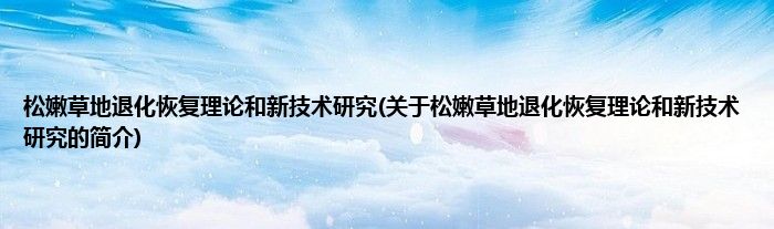 本文关于松嫩草地退化恢复理论和新技术研究的简介就讲解完毕,希望对大家有所帮助。