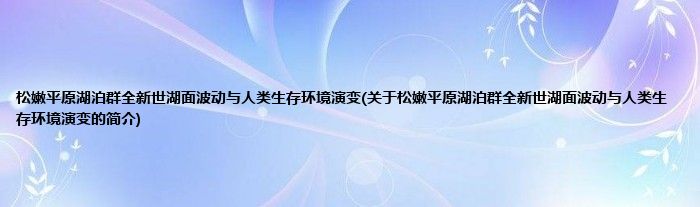 大家好,松嫩平原湖泊群全新世湖面波动与人类生存环境演变,关于松嫩平原湖泊群全新世湖面波动与人类生存环境演变的简介很多人还不知道,现在让我们一起来看看吧!