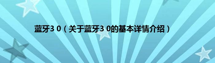 蓝牙3 0(关于蓝牙3 0的基本详情介绍)