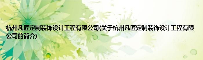 本文关于杭州凡匠定制装饰设计工程有限公司的简介就讲解完毕,希望对大家有所帮助。