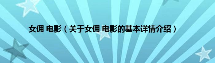 本文关于女佣 电影的基本详情介绍就讲解完毕,希望对大家有所帮助。
