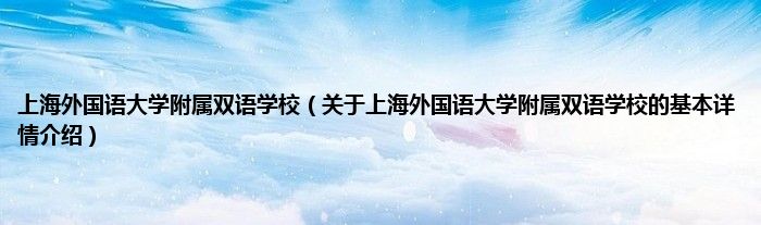 本文关于上海外国语大学附属双语学校的基本详情介绍就讲解完毕,希望对大家有所帮助。