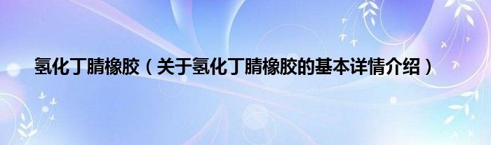 本文关于氢化丁腈橡胶的基本详情介绍就讲解完毕,希望对大家有所帮助。