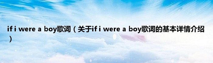 本文关于if i were a boy歌词的基本详情介绍就讲解完毕,希望对大家有所帮助。