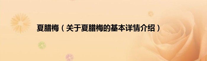 本文关于夏腊梅的基本详情介绍就讲解完毕,希望对大家有所帮助。