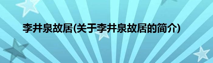 大家好,李井泉故居,关于李井泉故居的简介很多人还不知道,现在让我们一起来看看吧!