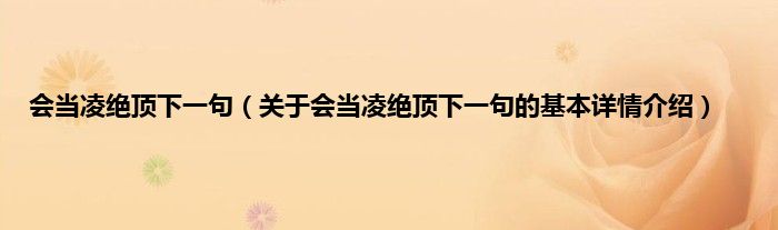 本文关于会当凌绝顶下一句的基本详情介绍就讲解完毕,希望对大家有所帮助。