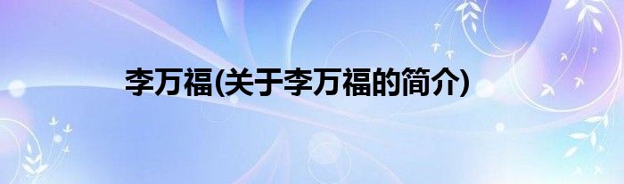 大家好,李万福,关于李万福的简介很多人还不知道,现在让我们一起来看看吧!
