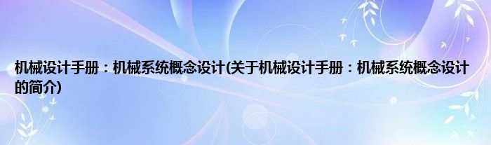 本文关于机械设计手册:机械系统概念设计的简介就讲解完毕,希望对大家有所帮助。