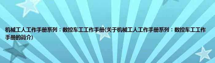 本文关于机械工人工作手册系列:数控车工工作手册的简介就讲解完毕,希望对大家有所帮助。