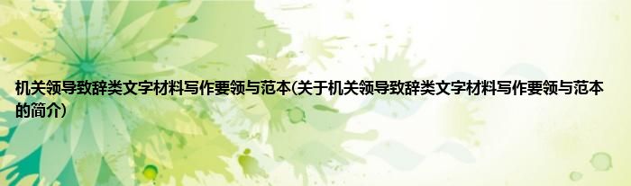 大家好,机关领导致辞类文字材料写作要领与范本,关于机关领导致辞类文字材料写作要领与范本的简介很多人还不知道,现在让我们一起来看看吧!