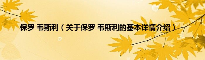 本文关于保罗 韦斯利的基本详情介绍就讲解完毕,希望对大家有所帮助。