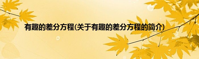 本文关于有趣的差分方程的简介就讲解完毕,希望对大家有所帮助。