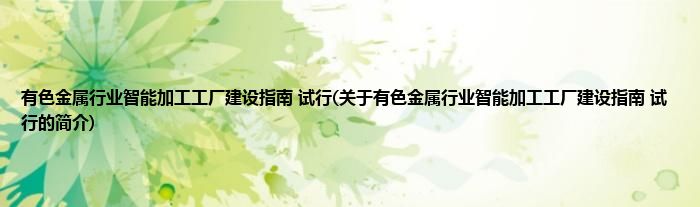 本文关于有色金属行业智能加工工厂建设指南 试行的简介就讲解完毕,希望对大家有所帮助。