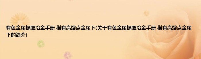 本文关于有色金属提取冶金手册 稀有高熔点金属下的简介就讲解完毕,希望对大家有所帮助。