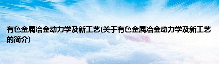 本文关于有色金属冶金动力学及新工艺的简介就讲解完毕,希望对大家有所帮助。