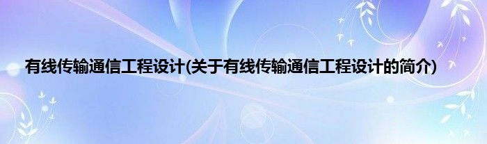 大家好,有线传输通信工程设计,关于有线传输通信工程设计的简介很多人还不知道,现在让我们一起来看看吧!