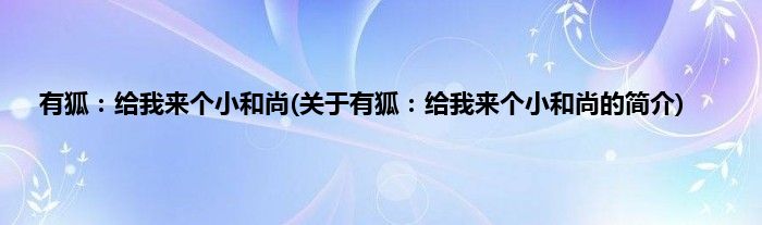 有狐:给我来个小和尚(关于有狐:给我来个小和尚的简介)