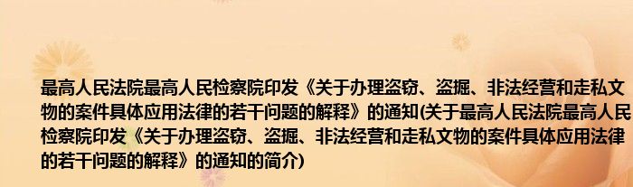 大家好,最高人民法院最高人民检察院印发《关于办理盗窃、盗掘、非法经营和走私文物的案件具体应用法律的若干问题的解释》的通知,关于最高人民法院最高人民检察院印发《关于办理盗窃、盗掘、非法经营和走私文物的案件具体应用法律的若干问题的解释》的通知的简介很多人还不知道,现在让我们一起来看看吧!