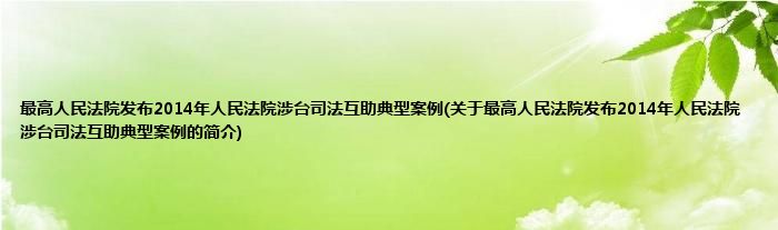 1、 最高人民法院发布2014年人民法院涉台司法互助典型案例是最高人民法院于2015年06月30日发布。