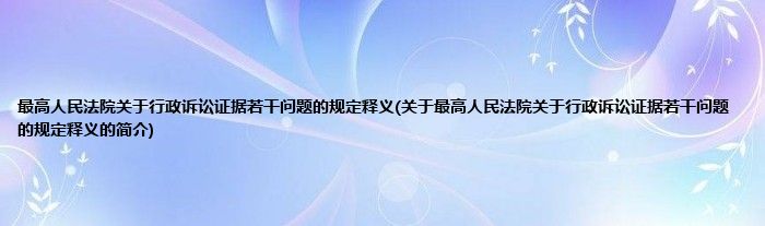 大家好,最高人民法院关于行政诉讼证据若干问题的规定释义,关于最高人民法院关于行政诉讼证据若干问题的规定释义的简介很多人还不知道,现在让我们一起来看看吧!