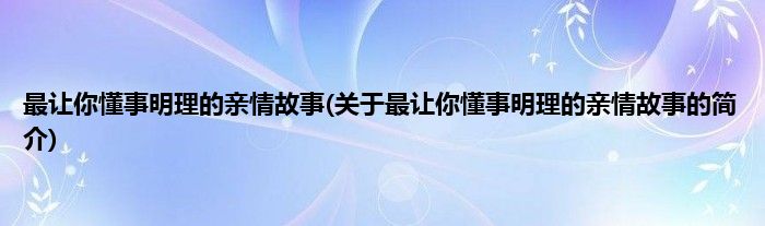 本文关于最让你懂事明理的亲情故事的简介就讲解完毕,希望对大家有所帮助。