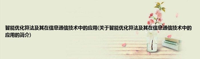 本文关于智能优化算法及其在信息通信技术中的应用的简介就讲解完毕,希望对大家有所帮助。