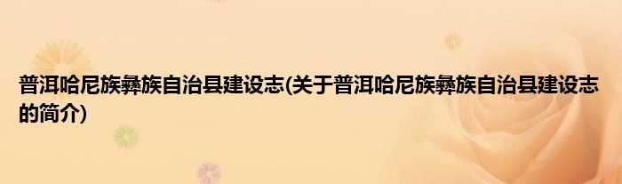 本文关于普洱哈尼族彝族自治县建设志的简介就讲解完毕,希望对大家有所帮助。