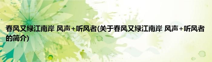 大家好,春风又绿江南岸 风声+听风者,关于春风又绿江南岸 风声+听风者的简介很多人还不知道,现在让我们一起来看看吧!