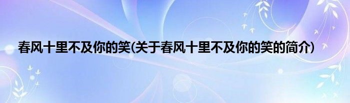 本文关于春风十里不及你的笑的简介就讲解完毕,希望对大家有所帮助。