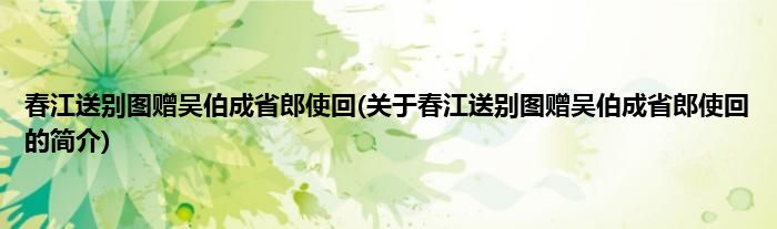 本文关于春江送别图赠吴伯成省郎使回的简介就讲解完毕,希望对大家有所帮助。