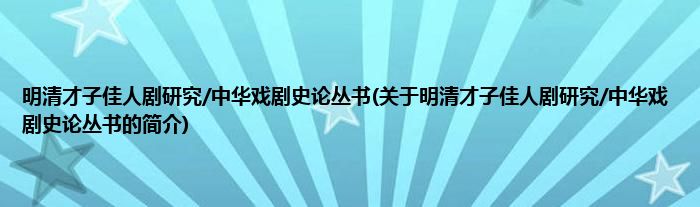 本文关于明清才子佳人剧研究/中华戏剧史论丛书的简介就讲解完毕,希望对大家有所帮助。