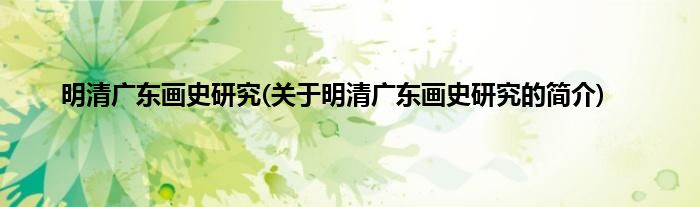 本文关于明清广东画史研究的简介就讲解完毕,希望对大家有所帮助。