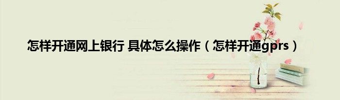 大家好,精选小编来为大家解答以上问题。怎样开通网上银行 具体怎么操作,怎样开通gprs很多人还不知道,现在让我们一起来看看吧!