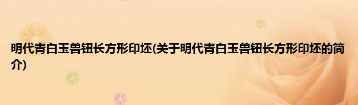 本文关于明代青白玉兽钮长方形印坯的简介就讲解完毕,希望对大家有所帮助。