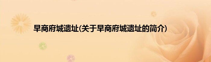 大家好,早商府城遗址,关于早商府城遗址的简介很多人还不知道,现在让我们一起来看看吧!