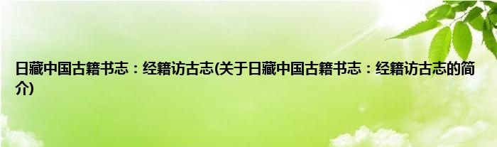 本文关于日藏中国古籍书志:经籍访古志的简介就讲解完毕,希望对大家有所帮助。