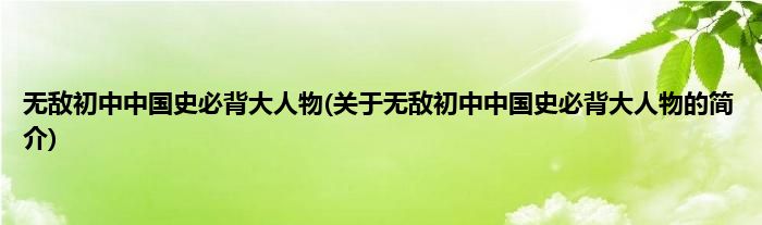 本文关于无敌初中中国史必背大人物的简介就讲解完毕,希望对大家有所帮助。