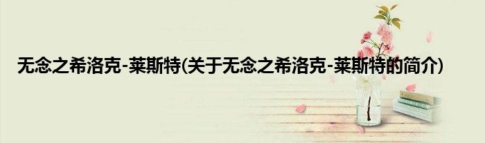 大家好,无念之希洛克-莱斯特,关于无念之希洛克-莱斯特的简介很多人还不知道,现在让我们一起来看看吧!