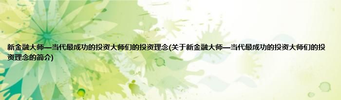 大家好,新金融大师—当代最成功的投资大师们的投资理念,关于新金融大师—当代最成功的投资大师们的投资理念的简介很多人还不知道,现在让我们一起来看看吧!