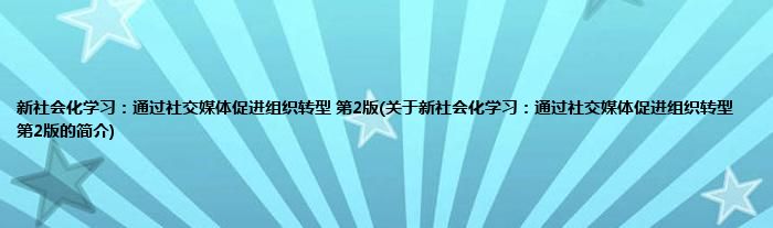 本文关于新社会化学习:通过社交媒体促进组织转型 第2版的简介就讲解完毕,希望对大家有所帮助。