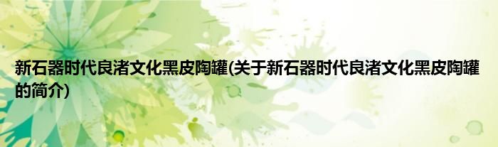 新石器时代良渚文化黑皮陶罐(关于新石器时代良渚文化黑皮陶罐的简介)