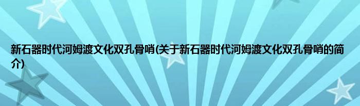 本文关于新石器时代河姆渡文化双孔骨哨的简介就讲解完毕,希望对大家有所帮助。