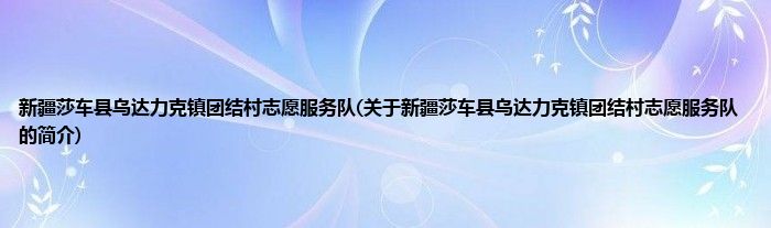 本文关于新疆莎车县乌达力克镇团结村志愿服务队的简介就讲解完毕,希望对大家有所帮助。