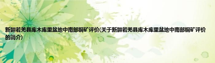 本文关于新疆若羌县库木库里盆地中南部铜矿评价的简介就讲解完毕,希望对大家有所帮助。