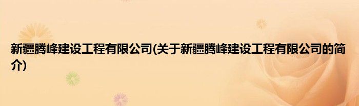 本文关于新疆腾峰建设工程有限公司的简介就讲解完毕,希望对大家有所帮助。