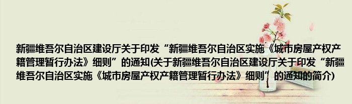 本文关于新疆维吾尔自治区建设厅关于印发“新疆维吾尔自治区实施《城市房屋产权产籍管理暂行办法》细则”的通知的简介就讲解完毕,希望对大家有所帮助。